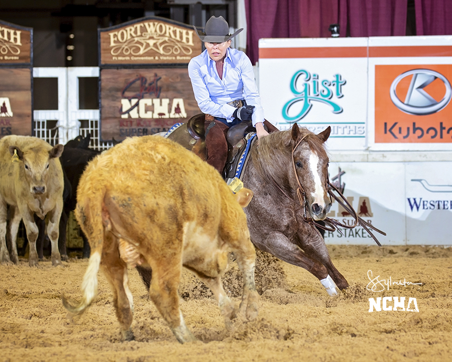 Stacie McDavid of Fort Worth, Tex., claimed her second Amateur championship at the Kit Kat Sugar NCHA Super Stakes in Fort Worth on Thursday, April 15. Riding DMAC Sweet N Sour, she scored 221 to beat John Kratzer of Weatherford, Tex., with a 220 on Babes Smart Cat. Bobby Ray Hawkins of Seguin, Tex., placed third with a 219.5 on Im A Platinum Kitty.