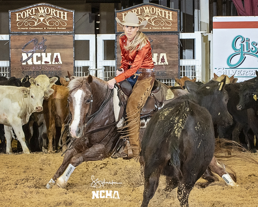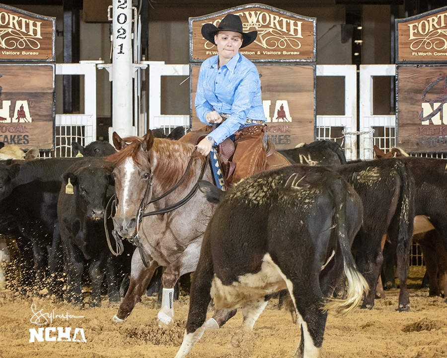Austria Arnold, Terrell, Tex., on Cat About Houston, and Jessica Feiner, Aspen, Colo., aboard Metallic Mania, tied with 221.5 points as co-champions of the 2021 McAlister Assets 6/7 Amateur NCHA Super Stakes, while Michelle Reichart, Frankton, Ind., placed third with 221 points riding Sweet Lil Prime Time. Arnold and Feiner each received $8,351 for the win and Reichart earned $6,811.