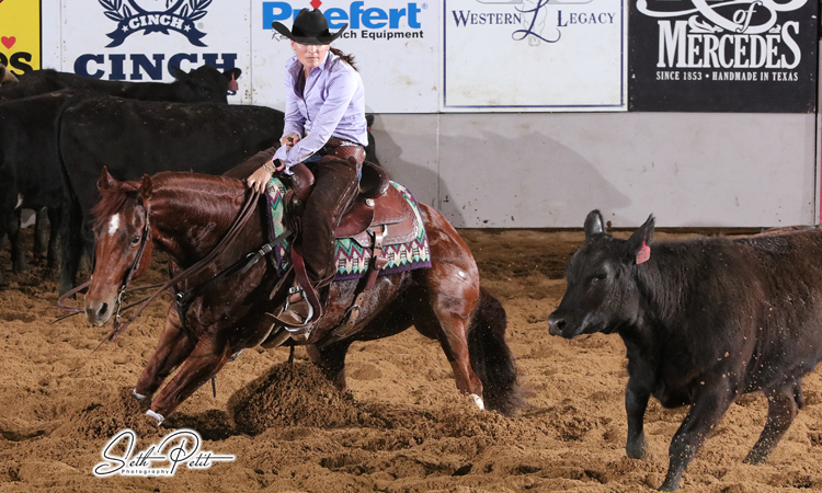 Missy Etheridge, the NCHA earner of $514,772, got her second reserve championship of the show in the Non-Pro, following her second-place on Deputy Droopy in the $5,000 Novice Non-Pro. In addition this year, she placed fourth in the Non-Pro on Boondexterous, and was a $25,000 Novice Non-Pro finalist on A Cat Named Johnny.